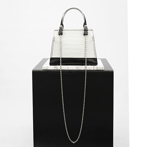 BLACK AND BONE COLOR CROCODILE LEATHER