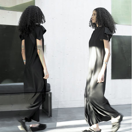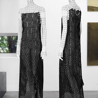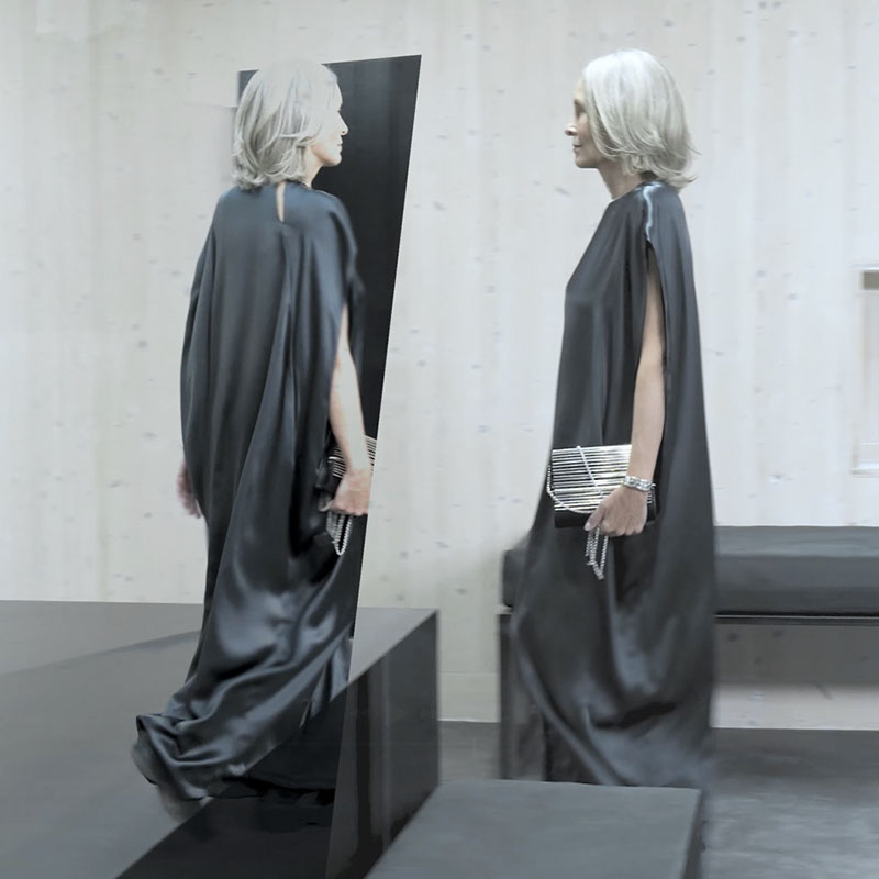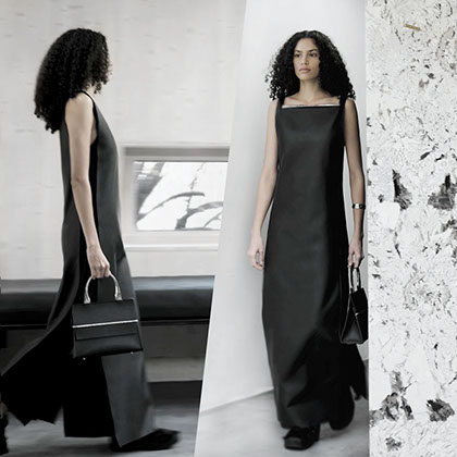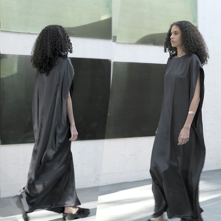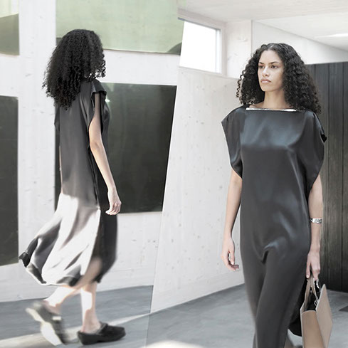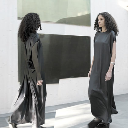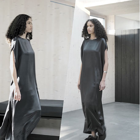 SILK CREPE SATIN AND ARGENTIUM SILVER