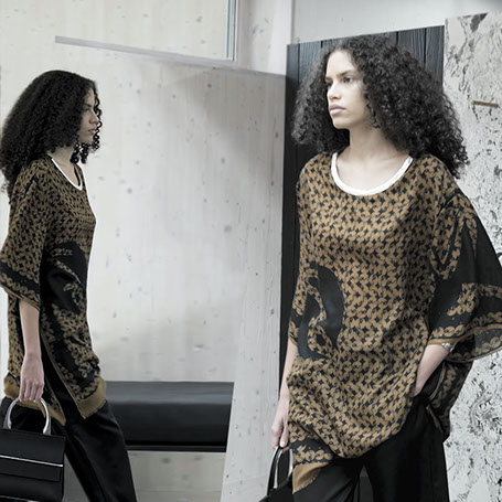 SIGNATURE NO-LOGO PRINT ON CASHMERE SILK WOOL GAUZE