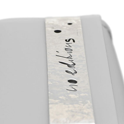 The no_editions signature silver handles, as well as the silver design elements, plaques and foot plates are a distinct and unique identity of our leather goods