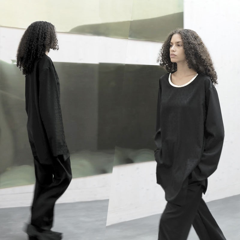 OUR SIGNATURE NO-LOGO FINE WOOL JACQUARD IS WOVEN EXCLUSIVELY FOR US IN ITALY, USING ORGANIC EXTRA FINE MERINO WOOL YARNS.