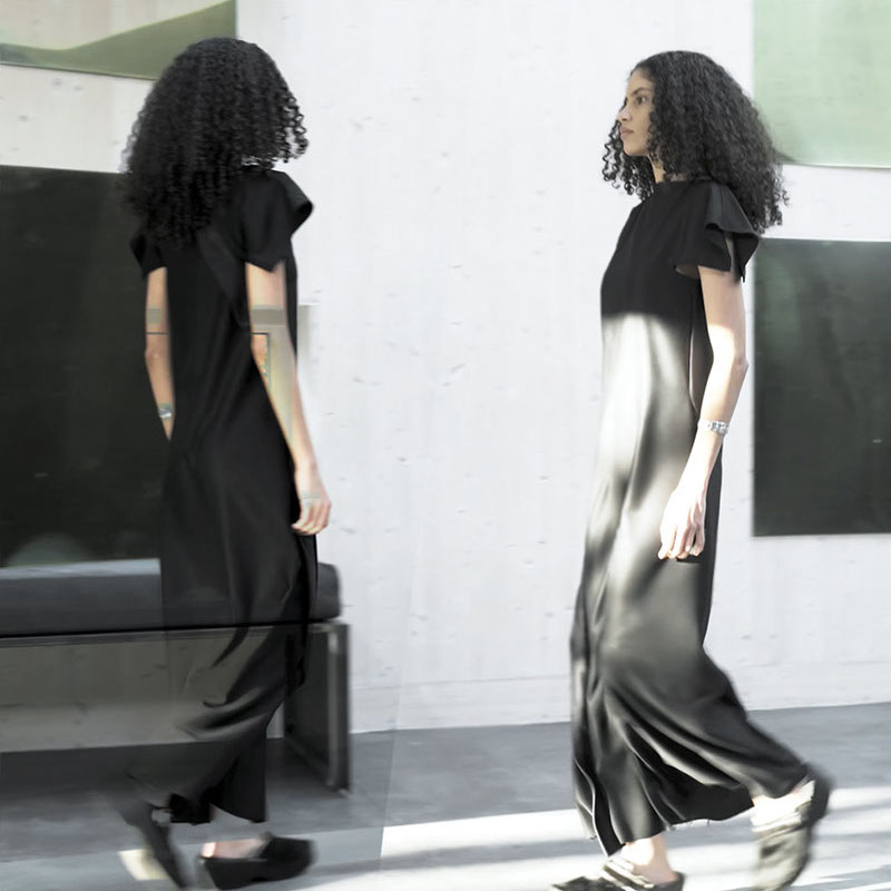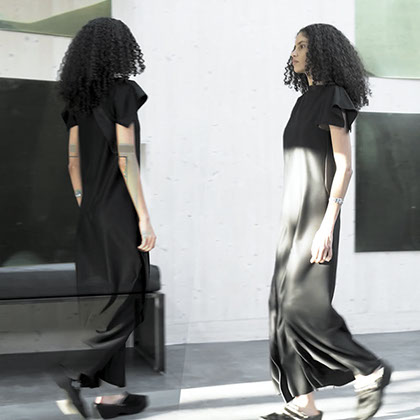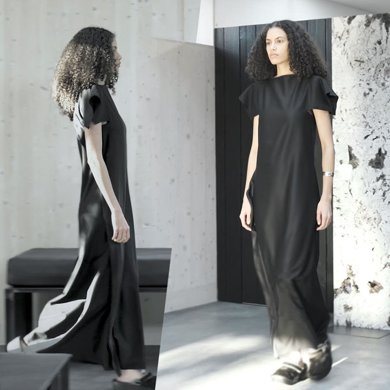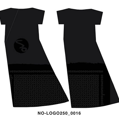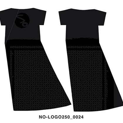 EACH DRESS FEATURES A DIFFERENT POSITIONING OF THE NO-LOGO DESIGN PATTERN - CREATING 45 SUBTLE, YET DISTINCT DESIGN VARIATIONS